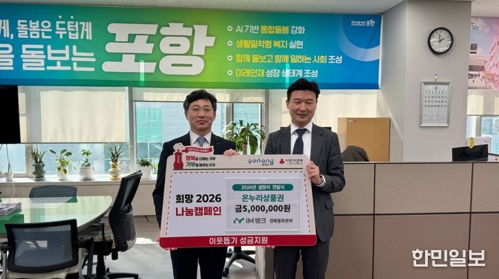 이번 기탁은 iM뱅크 경북동부본부가 설 명절을 앞두고 지역사회와의 유대감을 강화하고, 소외된 이웃들이 풍성한 명절을 보낼 수 있도록 실질적인 도움을 주기 위해 마련됐다. 기탁된 상품권은 설 연휴 전까지 지역 내 취약계층 50세대에 전달돼 명절 준비를 도울 예정이다.