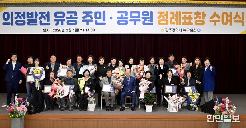 한민일보 서울포커스 임경복 기자 | 광주 북구의회는 지난 4일, 지역사회 발전에 헌신한 유공자들의 공로를 기리기 위해 2026년도 새해 첫 정례표창 수여식을 개최했다.