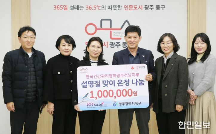 한민일보 서울포커스 임경복 기자 | 광주 동구는 지난 6일 한국건강관리협회 광주전남지부(본부장 박종석)가 설 명절을 맞아 온정나눔 기부금 1백만 원을 동구에 기탁했다고 밝혔다.