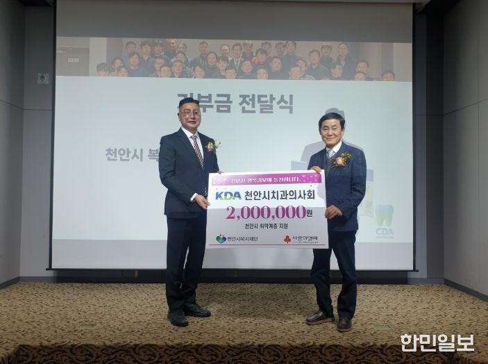 한민일보 서울포커스 황준형 기자 | (재)천안시복지재단은 천안시치과의사회가 지난 6일 열린 정기총회에서 취약계층을 위한 후원금 200만 원을 기탁했다고 밝혔다.