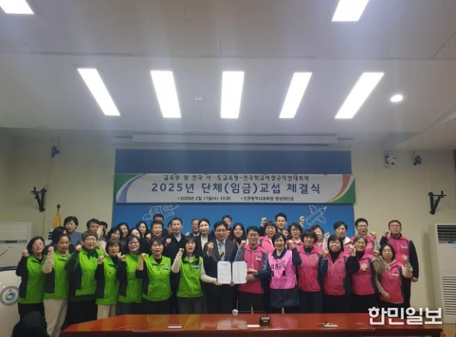 한민일보 서울포커스 임경복 기자 | 울산광역시교육청을 포함한 전국 17개 시도교육청이 11일 인천광역시교육청에서 전국학교비정규직연대회의와 ‘2025년 집단 임금 교섭 체결식’을 열었다.