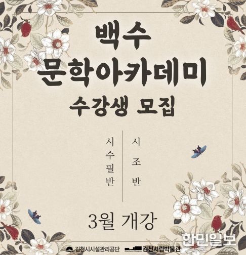 한민일보 서울포커스 임경복 기자 | 김천시시설관리공단(이사장 김재광)은 오는 3월부터 백수문학관과 김천시립박물관이 연계한 교육 프로그램 ‘백수문학아카데미’를 운영한다.