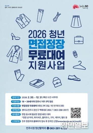 오태영 전주시 청년활력과장은 “취업 준비 과정에서 면접 정장 마련이 청년들에게 적지 않은 부담이 될 수 있다”면서 “청년들이 비용 걱정 없이 자신감을 갖고 면접에 임할 수 있도록 실질적인 지원을 이어가겠다”고 말했다.