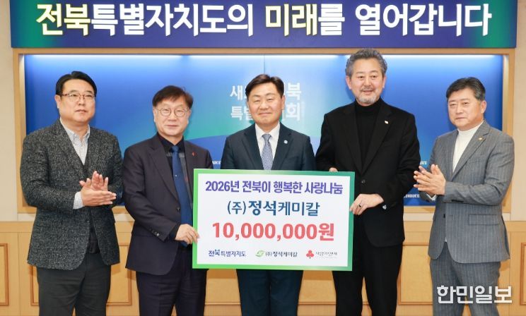 한민일보 서울포커스 박용남 기자 | 전북특별자치도는 23일 ㈜정석케미칼이 불우이웃돕기 성금 1천만 원을 지정 기탁했다고 밝혔다.