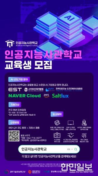 광주인공지능사관학교는 광주시와 과학기술정보통신부, 정보통신산업진흥원, 인공지능산업융합사업단이 지원하는 인공지능 전문인력 양성기관이다. 2020년 개교 이후 5년간 총 1528명의 전문 인력을 배출했으며, 최근 3~5기 수료생의 취·창업률은 76%를 기록하는 등 성과를 이어가고 있다.