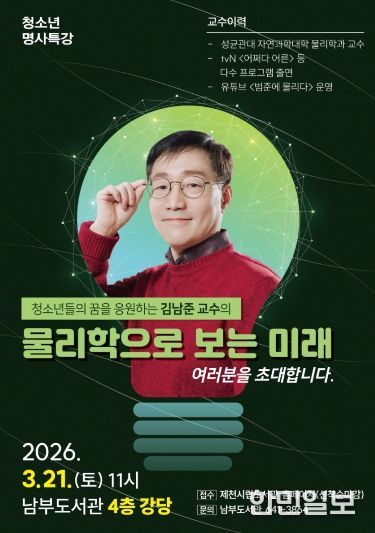 강연은 관내 청소년 및 학부모 약 90명을 대상으로 진행되며, 제천시립도서관 누리집에서 3월 3일부터 선착순으로 접수한다.