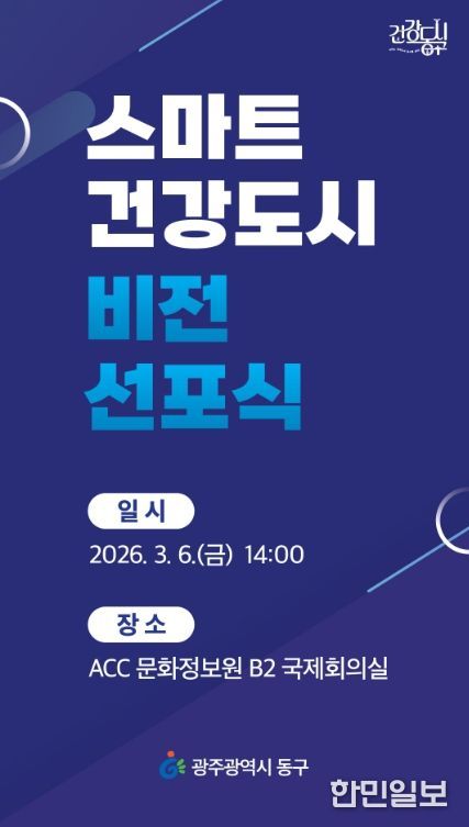 한민일보 서울포커스 임경복 기자 | 광주 동구는 오는 6일 오후 2시 국립아시아문화전당(ACC) 국제회의실에서 ‘스마트 건강도시 비전 선포식’을 열고, 데이터·인공지능(AI) 기반의 스마트 건강도시 조성에 본격적으로 나선다고 밝혔다.