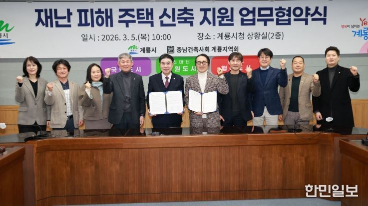 한민일보 서울포커스 임경복 기자 | 충남 계룡시는 5일 시청 상황실에서 충남건축사회 계룡지역회(회장 류욱형)와 ‘재난 피해 주택 신축지원을 위한 업무협약’을 체결했다고 밝혔다.