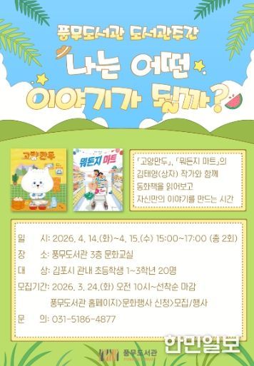 참여 신청은 3월 24일 오전 10시부터 풍무도서관 홈페이지에서 할 수 있으며, 김포시 관내 초등학생 1~3학년 20명을 선착순으로 모집한다