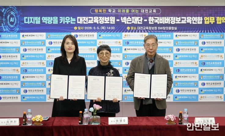 한민일보 서울포커스 유한희 기자 | 대전교육정보원은 3월 5일, 넥슨재단 및 한국비버정보교육연합과 함께 학교 현장의 실질적인 정보교육 강화를 위한 3자 업무협약을 체결했다.