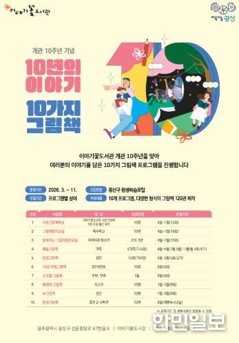 한민일보 서울포커스 임경복 기자 | 광주 광산구가 운영하는 이야기꽃도서관이 개관 10주년을 맞아 시민과 함께 만드는 특별한 그림책 프로젝트 ‘10년의 이야기, 10가지 그림책’을 추진한다.