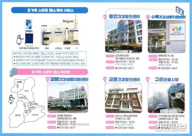 한민일보 서울포커스 임경복 기자 | 구리시는 최첨단 정보통신기술(ICT)을 활용해 시민들이 생활권 가까운 곳에서 만성질환을 예방하고 자가 건강관리 능력을 높일 수 있도록 운영 중인 ‘온가족 스마트 헬스케어존’ 5개소에 대해 3월 한 달간 집중 홍보를 한다고 밝혔다.