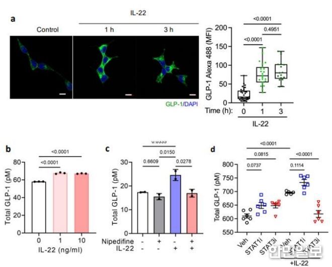 논문은 'Intestinal interleukin-22 enhances GLP-1 production via the STAT3 pathway to improve glucose homeostasis during high-fat diet induced obesity in a study with male mice'제목으로 지난 2월 21일 게재됐다.