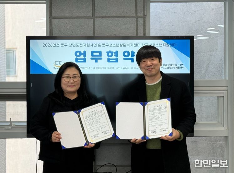 한민일보 서울포커스 백진욱 기자 | 인천 동구와 인천동구청소년상담복지센터·학교밖청소년지원센터는 지난 10일 청년도전지원사업 추진을 위한 업무협약을 체결했다고 밝혔다.