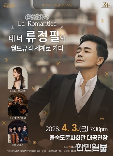 한민일보 서울포커스 임광현 기자 | 사하구 을숙도문화회관은 오는 4월 3일 오후 7시 30분 대공연장에서 제20회 스페셜 아티스트 'La Romantica - 테너 류정필의 월드뮤직 세계로 가다' 공연을 개최한다.