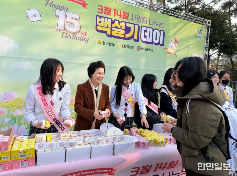 한민일보 서울포커스 박정민 기자 | 전남도는 12일 백설기데이(3월 14일)를 앞두고 무안 남악중학교에서 농협 전남지역본부와 함께 학생, 교직원 700명을 대상으로 백설기데이 쌀 소비촉진 행사를 추진했다.