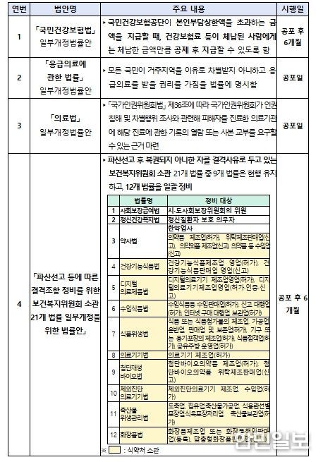한민일보 서울포커스 임경복 기자 | 보건복지부는 3월 12일 제433회 국회(임시회) 본회의에서 '국민건강보험법'·'응급의료에 관한 법률'·'의료법' 일부개정법률안, '파산선고 등에 따른 결격조항 정비를 위한 보건복지위원회 소관 21개 법률 일부개정을 위한 법률안' 등 보건복지부 소관 4개 법률안이 의결됐다고 밝혔다.