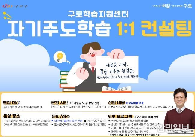 한민일보 서울포커스 진광성 기자 | 구로구가 오는 3월 16일부터 12월 31일까지 구로학습지원센터(가마산로25길 21)에서 ‘자기주도학습 상담실’을 운영한다.