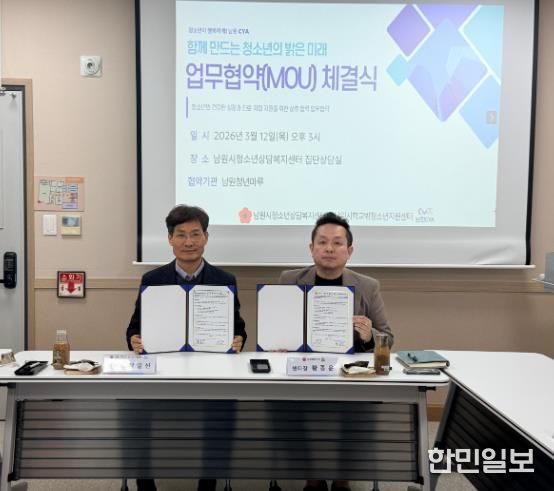 한민일보 서울포커스 박용남 기자 | 남원시가 위탁하고 남원CYA가 운영하는 남원시학교밖청소년지원센터는 지난 12일 남원청년마루와 학교 밖 청소년의 건강한 성장과 자립 지원을 위한 업무협약(MOU)을 체결했다고 밝혔다.