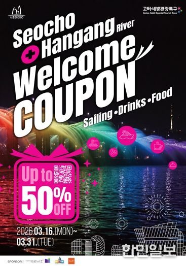 이번 이벤트는 관광객이 서초구 고터·세빛 관광특구 내 주요 명소인 고투몰, 반포한강공원, 피카소벽화거리 등을 방문해 인증사진을 촬영한 뒤 필수 해시태그(#seocho, #rainbowfountain 등)와 함께 개인 SNS에 게시하고, 이를 고터·세빛 관광안내센터에 제시하면 선착순 3,210명에게 ‘서초 웰컴쿠폰’을 제공한다. 쿠폰을 이용하면 최대 50% 할인 혜택을 받을 수 있다. 구는 SNS 인증 이벤트를 통해 내·외국인 관광객들에게 다양한 할인 혜택을 제공하고 관광특구 방문을 유도해 관광특구 일대를 대한민국을 대표하는 관광 명소로 알린다는 계획이다.