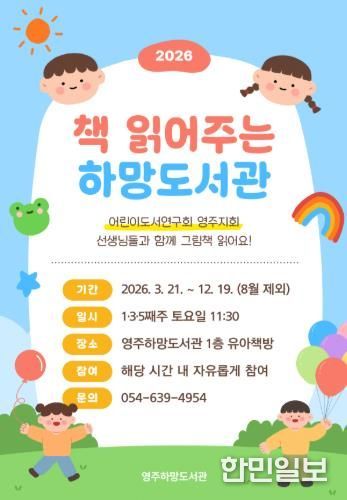 한민일보 서울포커스 김봉순 기자 | 영주시는 오는 21일부터 영유아 및 아동을 대상으로 ‘책 읽어주는 하망도서관’ 프로그램을 운영한다고 밝혔다.