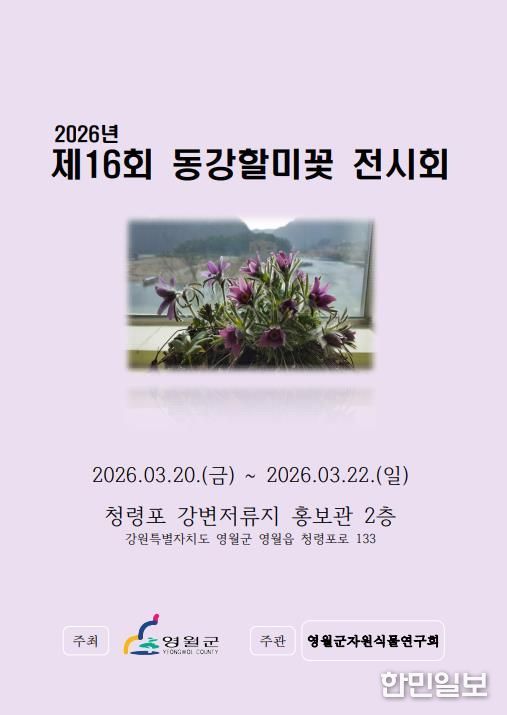 한민일보 서울포커스 진광성 기자 | 2026년 3월 20일부터 22일까지 영월군 청령포 강변저류지 홍보관에서 제16회 동강할미꽃 전시회를 개최한다.