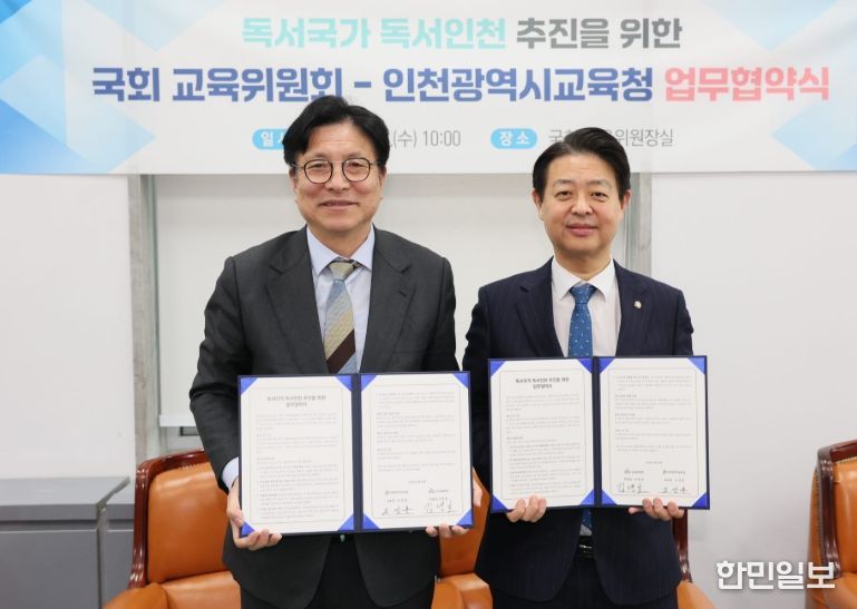 양 기관은 이번 협약에 따라 인천시교육청의 독서 정책을 생애주기별 독서교육 모델로 확산하고, 국회 차원의 입법·제도적 지원과 교육청의 현장 실행력을 연계해 ‘독서국가 교육 대전환 프로젝트’의 실행 기반을 함께 다져나가기로 했다.
