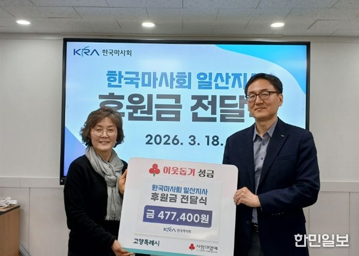 이번 기부금은 약 47만 원으로, 한국마사회 일산지사 건물 내 설치된 모금함에 시민들이 자발적으로 기부한 금액이다.