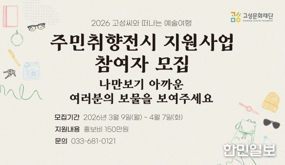 한민일보 서울포커스 진광성 기자 | 평화 경제 거점 도시 강원 고성군 산하 (재)고성문화재단은 주민이 자신의 취향과 삶의 이야기를 전시로 풀어내는 참여형 문화사업 ‘주민취향전시 지원사업’을 추진한다.