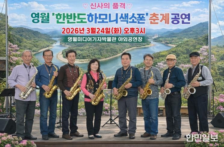 한반도하모니색소폰은 오는 24일 오후 3시 영월미디어기자박물관 야외공연장에서 한반도면 어르신들을 초청해 ‘2026 춘계공연’을 개최한다.