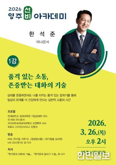 한민일보 서울포커스 김봉순 기자 | 영주시 대표 시민 교양 프로그램인 ‘2026 영주선비아카데미’가 오는 26일 오후 2시, 영주시민회관에서 올해의 첫 여정을 시작한다.