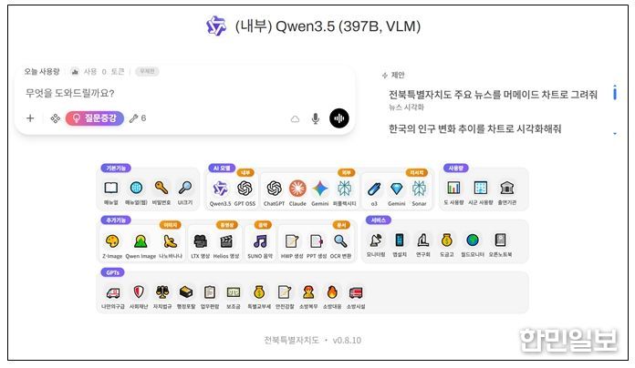 한민일보 서울포커스 박용남 기자 | 전북특별자치도가 자체 구축해 운영 중인 생성형 AI 시스템의 누적 사용량이 정식 운영 개시 3개월 만에 10만 건을 돌파했다.