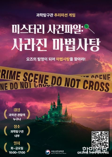 한민일보 서울포커스 기자 | 과학기술정보통신부 국립과천과학관은 관람객이 즐길 수 있는 디지털 추리 임무(미션) 프로그램 『수수께끼(미스터리) 사건 파일: 사라진 마법 사탕』을 3월 31일부터 과학탐구관에서 선보인다고 밝혔다.