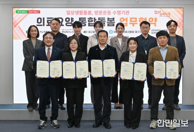 한민일보 서울포커스 임경복 기자 | 대구 남구는 3월 24일 의료요양통합돌봄 사업의 일환으로 가사, 동행, 방문운동을 수행할 지역 내 기관 4곳과 업무 협약을 체결했다.