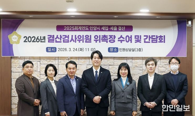 한민일보 서울포커스 김성윤 기자 | 안양시의회는 3월 24일 시의회 3층 민원상담실에서 ‘2025회계연도 결산검사위원 위촉식 및 간담회’를 개최하고, 투명하고 건전한 재정 운영을 위한 본격적인 행보에 나섰다.