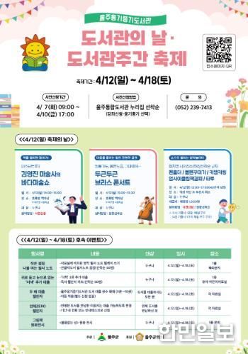 한민일보 서울포커스 기자 | 울주옹기종기도서관이 ‘도서관의 날(4월 12일)’과 ‘도서관 주간(4월 12~18일)’을 맞아 독서문화 확산과 도서관 이용 활성화를 위한 다양한 특별행사를 운영한다고 1일 밝혔다.