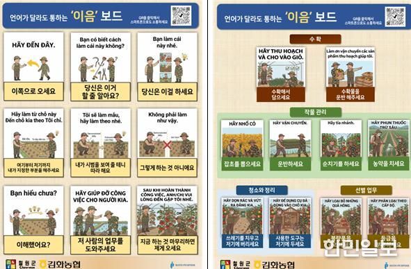 한민일보 서울포커스 진광성 기자 | 철원군이 공공형 외국인 계절근로자를 고용하는 농가의 가장 큰 고충인 ‘언어 소통’문제를 해결하기 위해 스마트폰 웹 앱 ‘이음보드’와 맞춤형 소통 도구인 ‘이음카드’를 전격 도입한다.