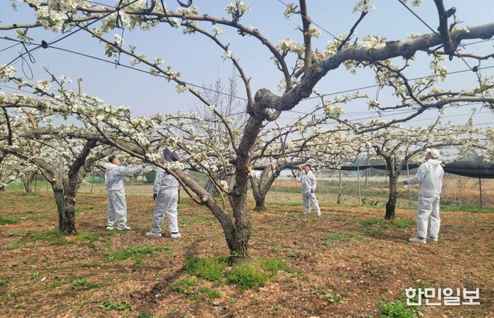다만, 꽃 피는 시기 기온이 낮으면 곤충 활동이 줄어 자연 수분이 어려워지므로 인공수분에 더욱 신경을 써서 배 꽃이 40-80% 정도 피었을 때 실시하고 기상여건을 고려한 세심한 관리가 요구된다.