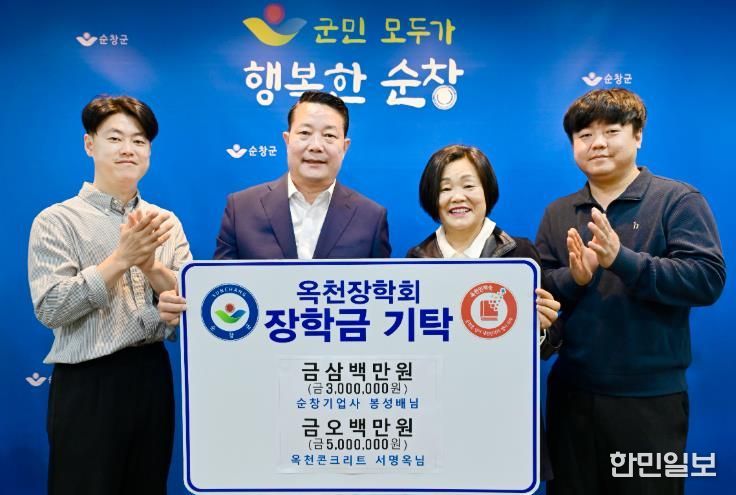 한민일보 서울포커스 김용택 기자 | 순창군은 6일 순창기업사와 옥천콘크리트가 (재)순창군옥천장학회에 지역인재 육성에 써달라며 장학금을 기탁했다고 밝혔다.