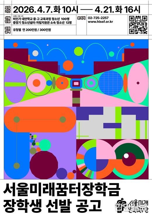 한민일보 서울포커스 국용호 기자 | 서울미래인재재단은 기존 서울꿈길장학금의 지원 대상을 확대하고 유형을 세분화하여 ‘서울미래꿈터장학금’을 신설한다. 재단은 비인가 대안학교 재학생은 물론 가정 밖 청소년까지 총 112명을 선발하고, 총 2억 3,600만 원 규모의 학업 장려금을 지원할 계획이다.