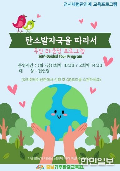 충남기후환경교육원은 체험관 시설을 활용한 ‘참여형 체험 기반 상시 환경교육 프로그램’을 오는 4월 13일부터 10월 31일까지 운영한다고 밝혔다.
