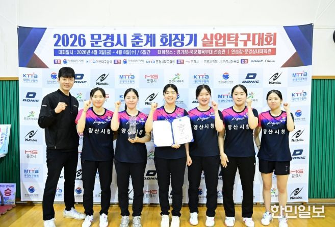 한민일보 서울포커스 최성훈 기자 | 양산시청 여자탁구단이 지난 3일부터 8일까지 경북 문경시 국군체육부대에서 개최된 '2026 문경시 춘계 회장기 실업탁구대회'에서 다수의 입상 성과를 거두며 전국 무대에서 뛰어난 실력을 입증했다고 밝혔다.