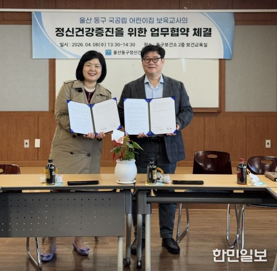 한민일보 서울포커스 기자 | 울산동구정신건강복지센터는 4월 8일 오후 1시 30분 동구보건소 2층 보건교육실에서 울산 동구 국공립 어린이집연합회와 함께 보육 교사의 정신건강 증진을 위한 업무 협약을 체결했다.