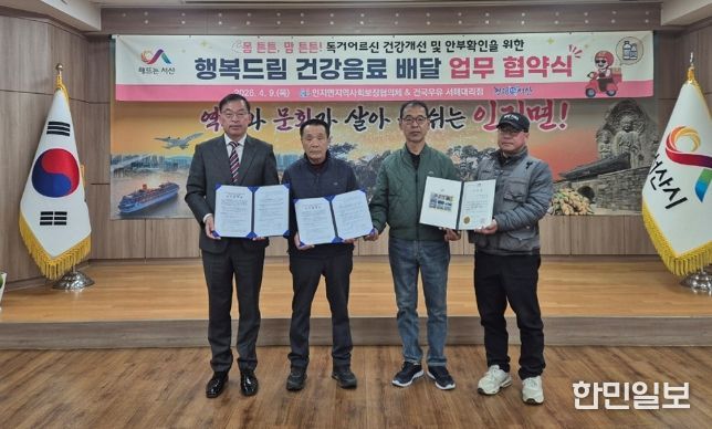 한민일보 서울포커스 임경복 기자 | 인지면지역사회보장협의체(공공위원장 박한일, 민간위원장 유병상)는 9일 지역특화사업인 '행복드림 건강음료 배달'사업 추진을 위해 건국우유 서해대리점(대표 김성태)과 업무협약을 실시했다.