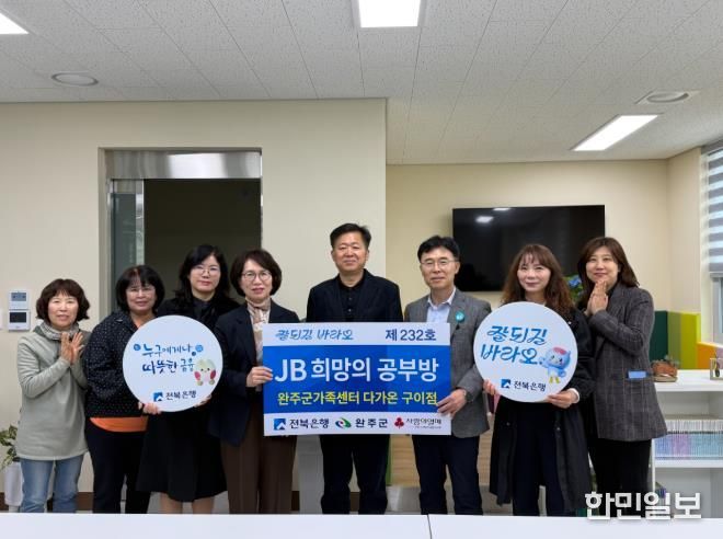한민일보 서울포커스 박용남 기자 | JB 금융그룹이 추진하는 사회공헌 활동인 ‘JB 희망의 공부방’ 제229호가 9일 완주군 가족센터 다가온 구이점에 새롭게 둥지를 틀며 다문화가족 아동들을 위한 따뜻한 배움터 마련에 힘을 보탰다.