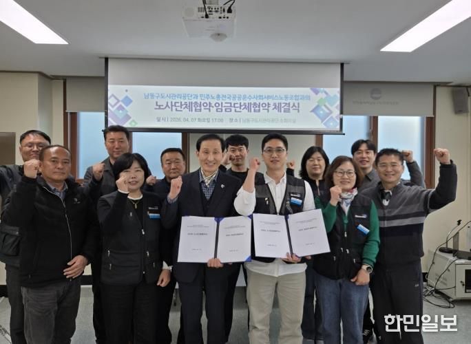 한민일보 서울포커스 김성혜 기자 | 인천시 남동구도시관리공단은 최근 민주노총 전국공공운수 사회서비스노동조합 남동구도시관리공단 지부와 노사단체협약을 체결했다고 10일 밝혔다.