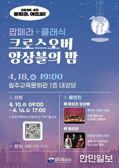 한민일보 서울포커스 임경복 기자 | 원주교육문화관(관장 용석태)은 관내 학생, 학부모, 지역 주민의 문화 향유 기회 확대를 위해 2026년 문화예술공연 ‘문화관, 아트로!’ 공연을 연중 운영한다.
