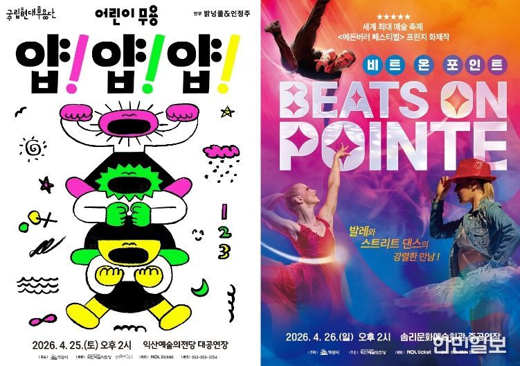 익산예술의전당은 오는 25일 국립현대무용단의 어린이 무용 '얍! 얍! 얍!'에 이어 26일 융복합 댄스 공연 '비트 온 포인트(Beats on Pointe)'를 선보인다.