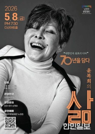 한민일보 서울포커스 김성윤 기자 | 남양주시는 오는 25일 다산아트홀에서 남양주문화재단이 가수 윤복희 콘서트 ‘삶’을 개최한다고 10일 밝혔다.