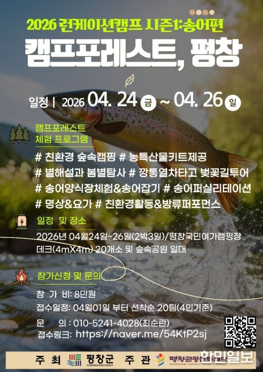 이 중 첫 번째 시즌인 ‘송어 따라 흐르는 자연 캠핑’은 오는 4월 24일부터 26일까지 2박 3일간 평창 방림국민여가캠핑장에서 진행된다.